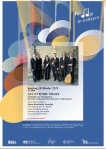 Das Konzert findet am Samstag, den 18.10.25 um 17 Uhr in der ev. Stadtkirche in Nidda statt. Deutsche und italienische Musik des 17. Jahrhunderts steht im Mittelpunkt.